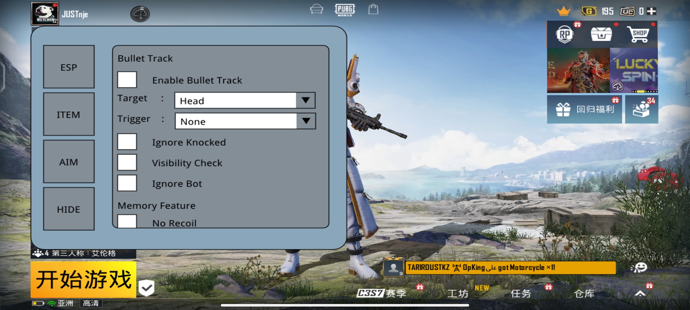 PUBG国体·晴天直装绘制锁敌子追内存多功能 v2.2