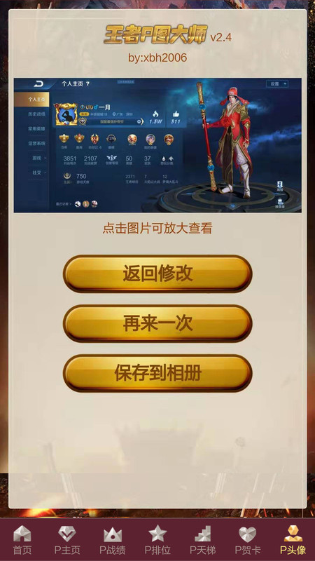 【辅助名称】:王者荣耀P图大师直接生成国服战绩小助手...