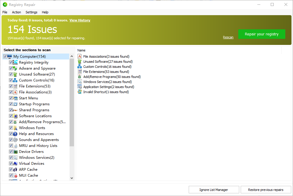 备份和恢复:软件提供注册表备份和恢复功能,使用户能够在修复之后轻松还原注册表。